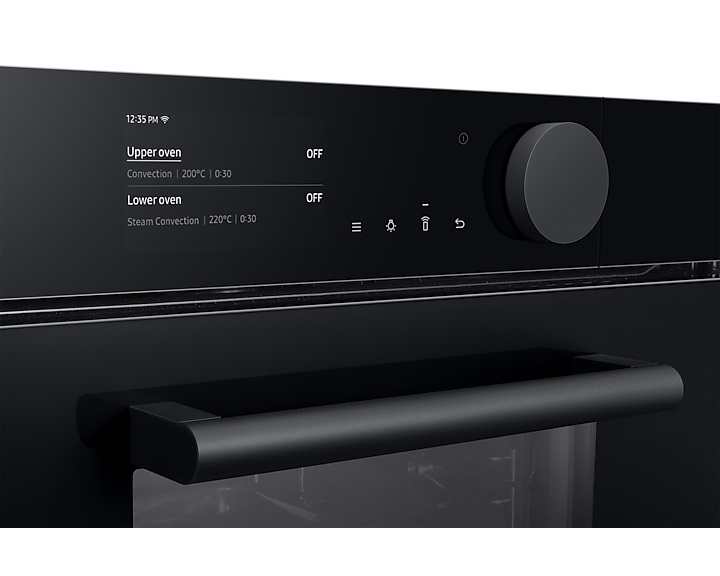 Готовка стала ще зручнішою завдяки 4,3-дюймовому TFT-LCD дисплею з поворотним перемикачем, який спрощує управління всіма функціями шафи. З підтримкою WLAN і додатку SmartThings ви можете контролювати настройки приготування з будь-якої точки — включаючи попереднє розігрівання духовки прямо зі смартфона.