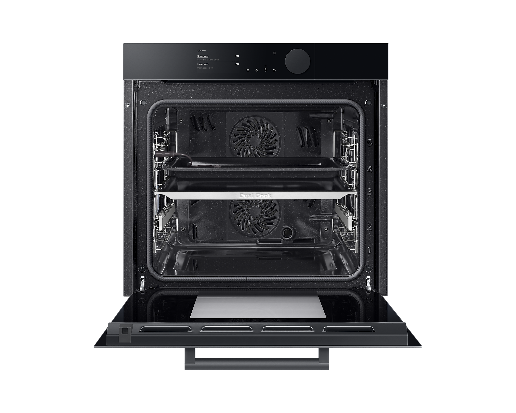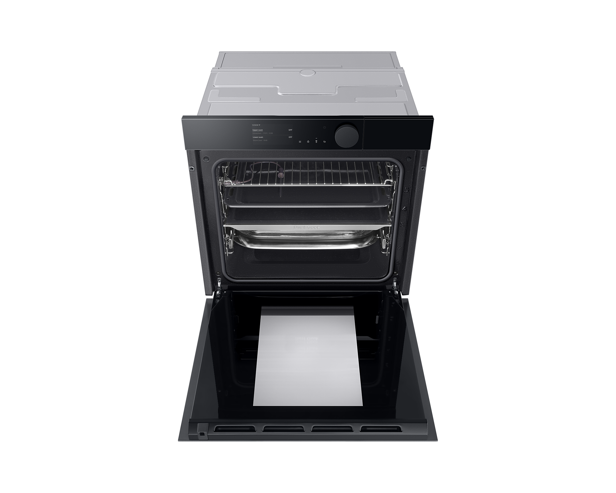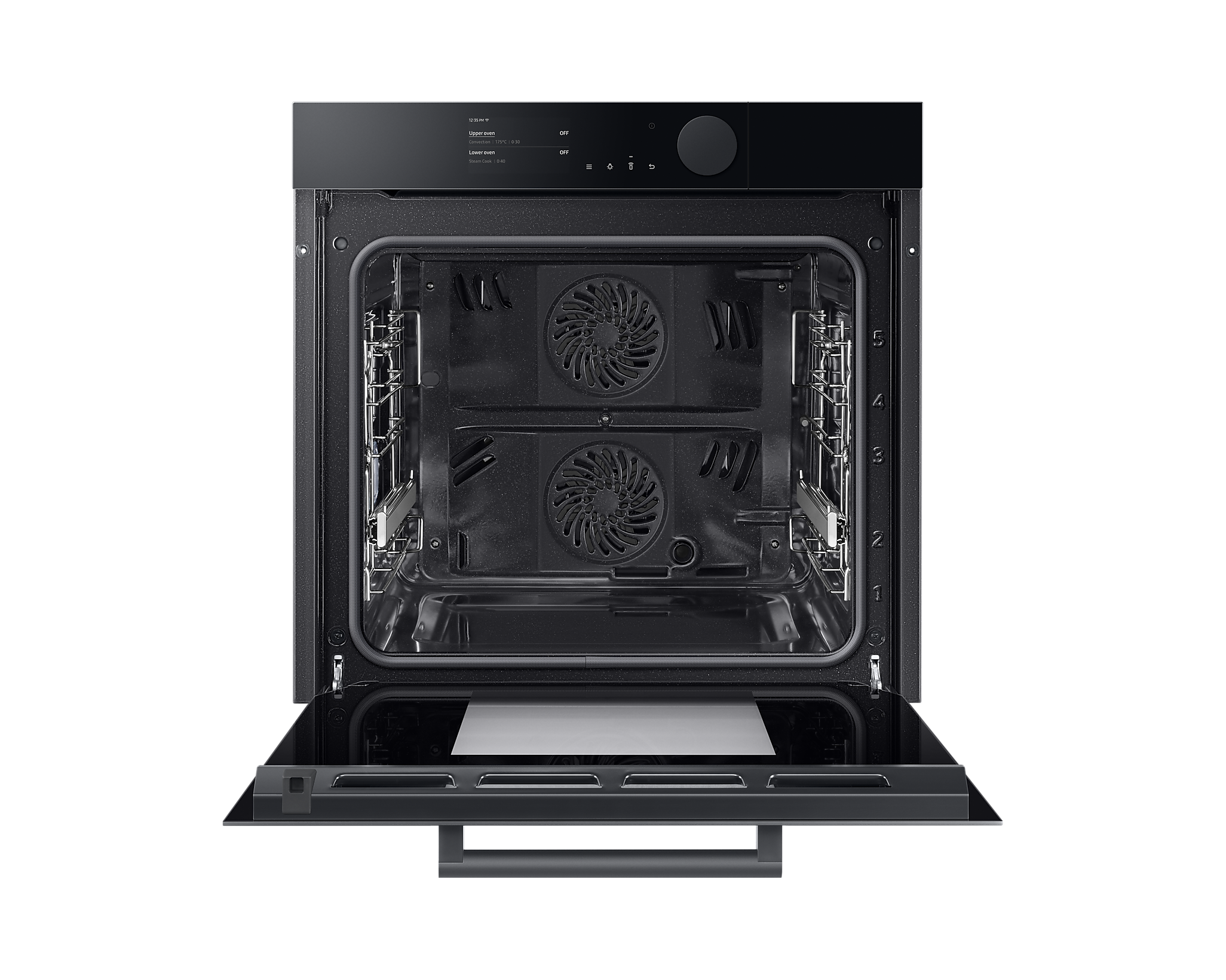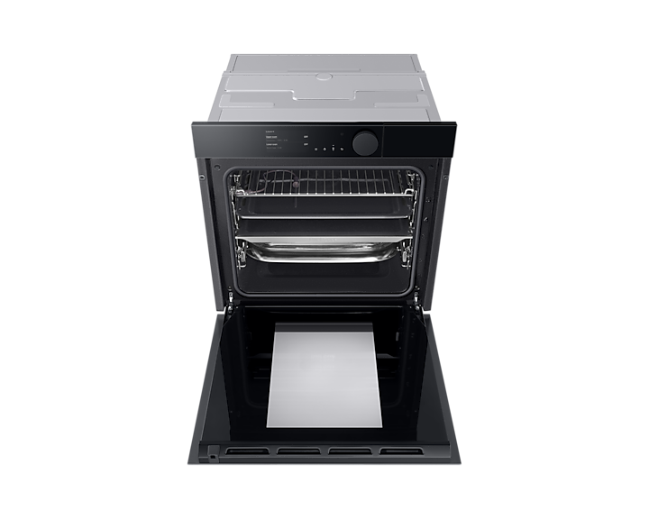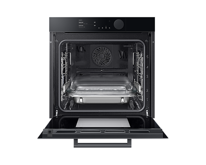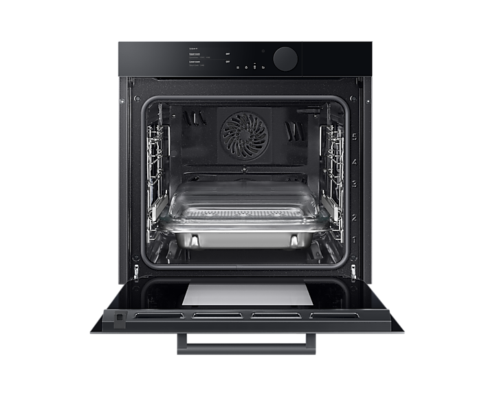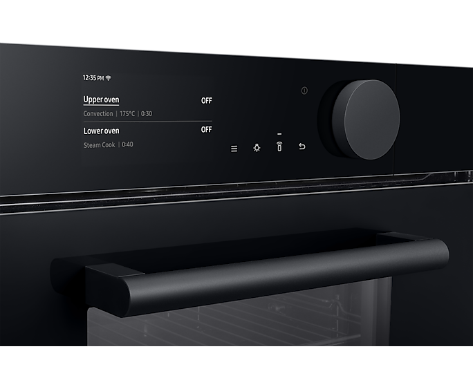 Духовий шкаф оснащений 4,3' TFT-LCD екраном з поворотним кнопкою, що забезпечує зручність в управлінні та моніторингу процесу приготування. Завдяки WLAN-з'єднанню та SmartThings, ви зможете контролювати роботу духовки з вашого смартфона, що робить приготування ще більш зручним.