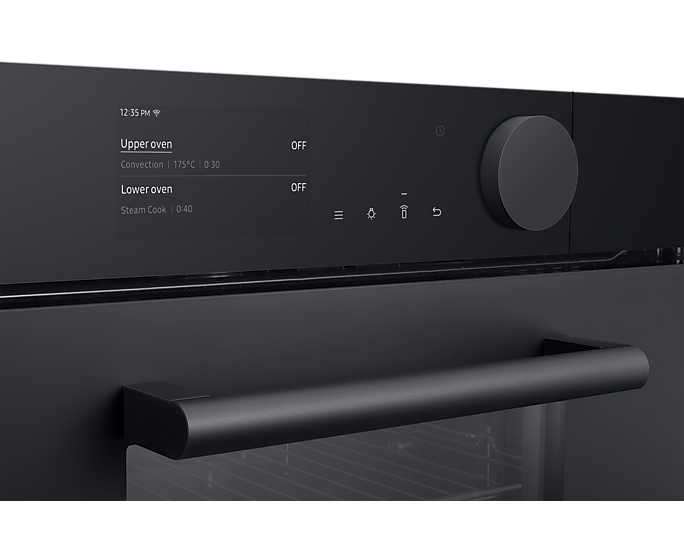 Завдяки функції Dual Cook Steam™ ви зможете насолоджуватися здоровою їжею, де натуральний смак зберігається завдяки приготуванню на пару. Додатково, духівка оснащена дисплеєм Full Touch 4,3'' TFT-LCD, що полегшує управління і надає можливість керувати нагріванням за допомогою смартфона через Wi-Fi з'єднання і додаток SmartThings.