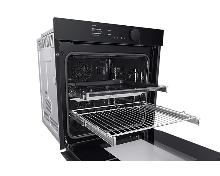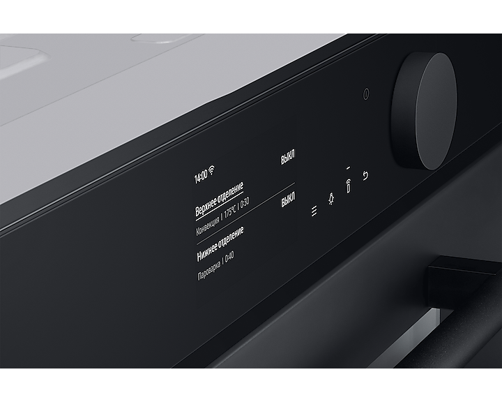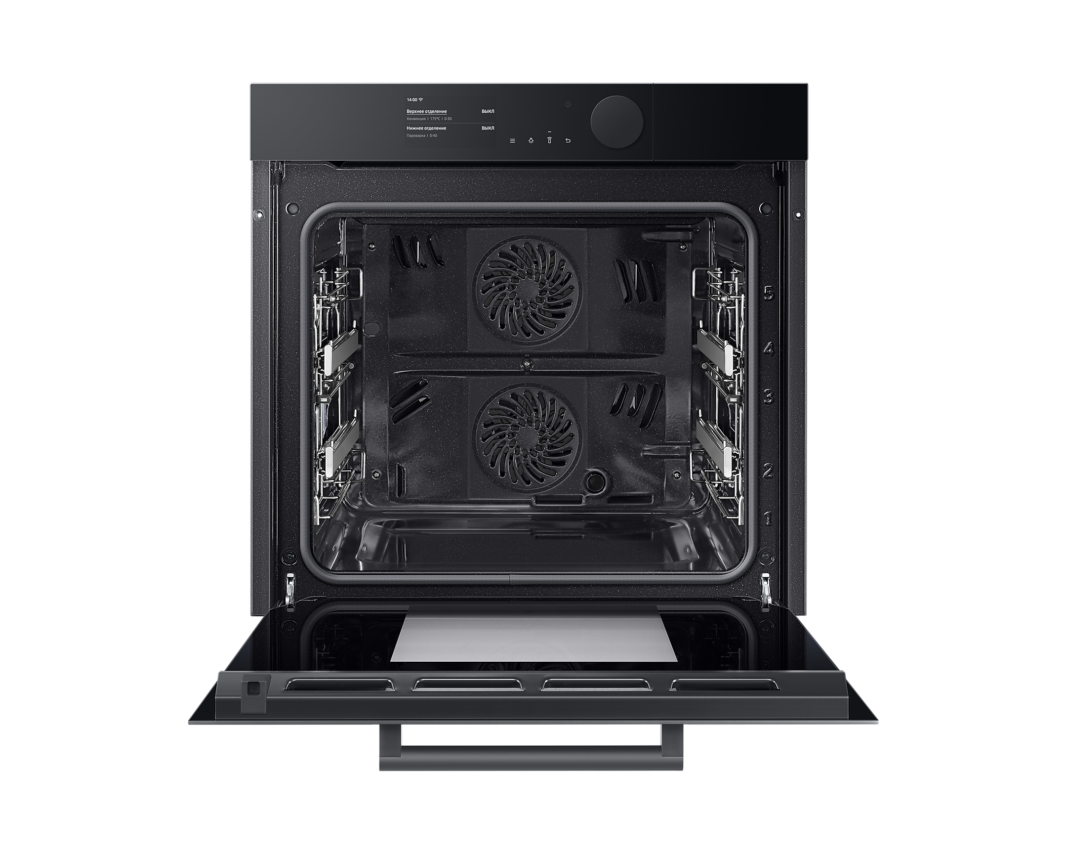 Ця модель оснащена 4,3-дюймовим TFT-дисплеєм, що забезпечує зручне управління та контроль за процесом приготування. Завдяки можливості підключення до Wi-Fi через додаток SmartThings, ви зможете керувати духівкою з будь-якого місця, що значно економить ваш час. Система піролітичного очищення дозволяє легко підтримувати чистоту, спалюючи залишки їжі при високій температурі.