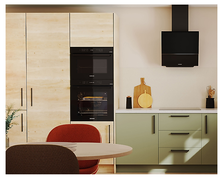 Завдяки тeleskopічним направляючим, ви зможете легко вставляти та виймать деко навіть з важкими стравами, а SmartThings Cooking забезпечить більш комфортний процес приготування, підказуючи індивідуальні рецепти та плануючи меню на тиждень.