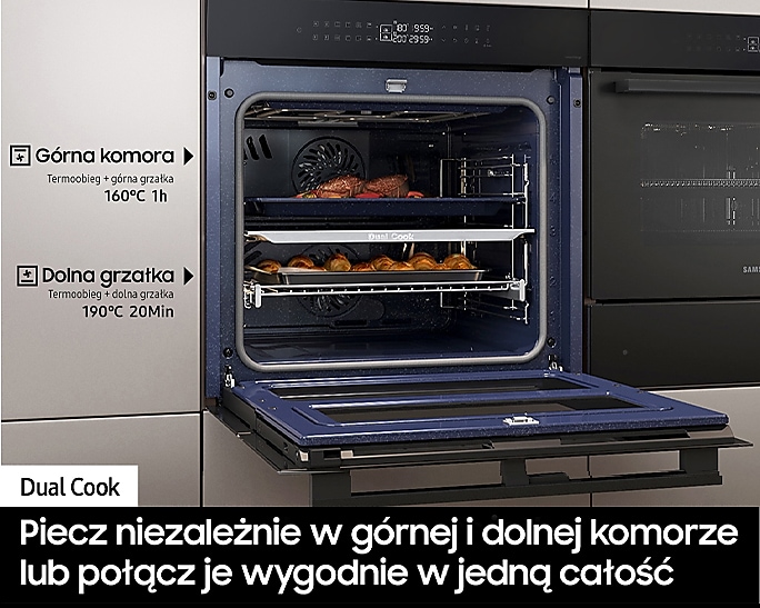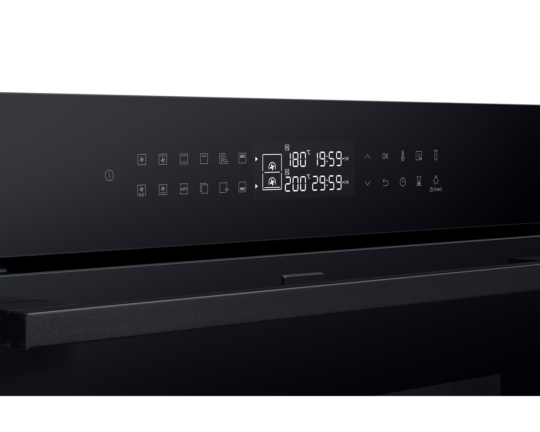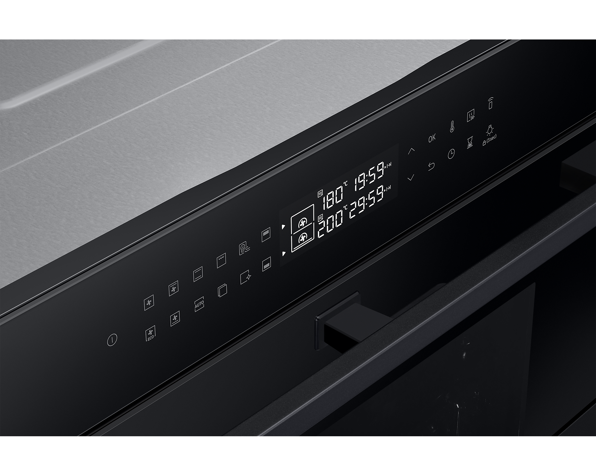 Духовий шкаф Samsung NV7B4325ZAK/U2 поєднує в собі інноваційні технології для приготування їжі, що дозволяють максимально спростити ваш кулінарний досвід. Завдяки технології Dual Cook Flex, він забезпечує можливість незалежного використання верхньої і нижньої частини шафи, що особливо зручно при приготуванні різних страв одночасно. Ви можете відкривати лише половину дверей, щоб контролювати процес, не порушуючи тепло в нижній секції.