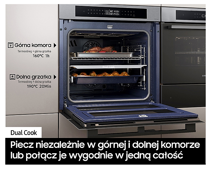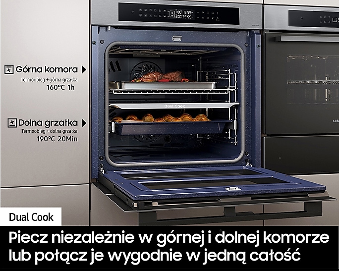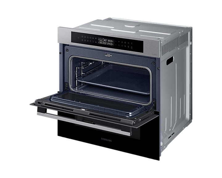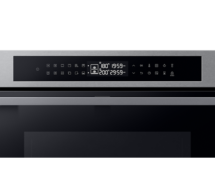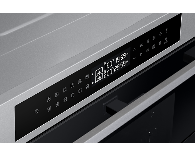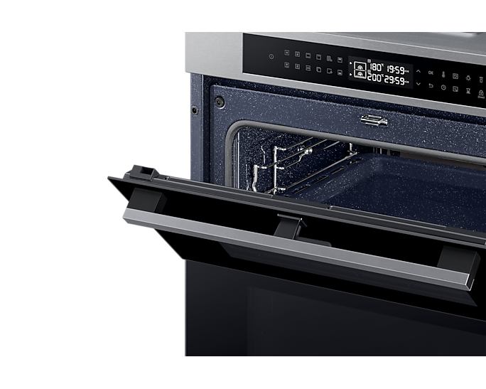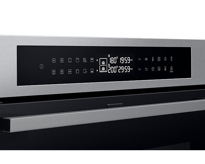 Духовий шкаф Samsung NV7B4345VAS/U2 поєднує в собі передові технології для максимальної гнучкості та комфорту приготування їжі. Основною особливістю є Dual Cook Flex, що дозволяє готувати два різні страви одночасно за різними температурними режимами, і має дверцята, які відкриваються частково, спрощуючи доступ до верхньої зони.
