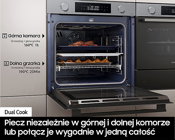 Духовий шкаф Samsung NV7B4445VAS/U2 стане незамінним помічником на вашій кухні завдяки унікальним функціям та потужності. З технологією Dual Cook ви можете одночасно готувати два різних страви в двох окремих зонах, при цьому зберігаючи аромати і смаки окремими. Це не тільки заощаджує час, а й енергію, адже ви можете використовувати тільки одну зони при необхідності.