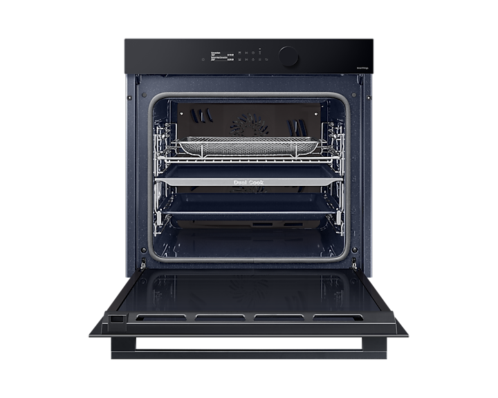 Духовий шкаф Samsung NV7B5645TAK/WT поєднує в собі сучасні технології та стильний дизайн, пропонуючи безліч можливостей для приготування їжі. Ключовою особливістю є система Dual Cook, яка дозволяє готувати два різні страви одночасно, використовуючи незалежні зони духовки. Це оптимальний варіант для ефективного приготування, коли потрібно різнобічно підходити до процесу готування.