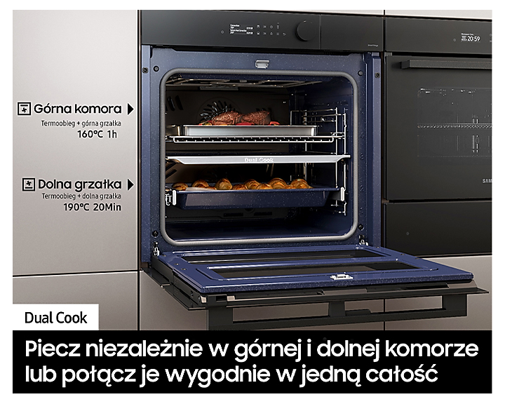 Духовий шкаф Samsung NV7B5660XAK/U2 поєднує в собі інноваційні технології, що роблять приготування їжі більш зручним та ефективним. Ця модель обладнана функцією Dual Cook, яка дозволяє розділити простір духовки на дві камери, що дає можливість одночасно готувати дві страви за різними температурами, не змішуючи аромати. Завдяки технології Steam Assist, ваші страви будуть ще смачнішими і соковитішими, оскільки пар зберігає натуральну вологу продуктів, роблячи їх хрусткими та золотистими ззовні.