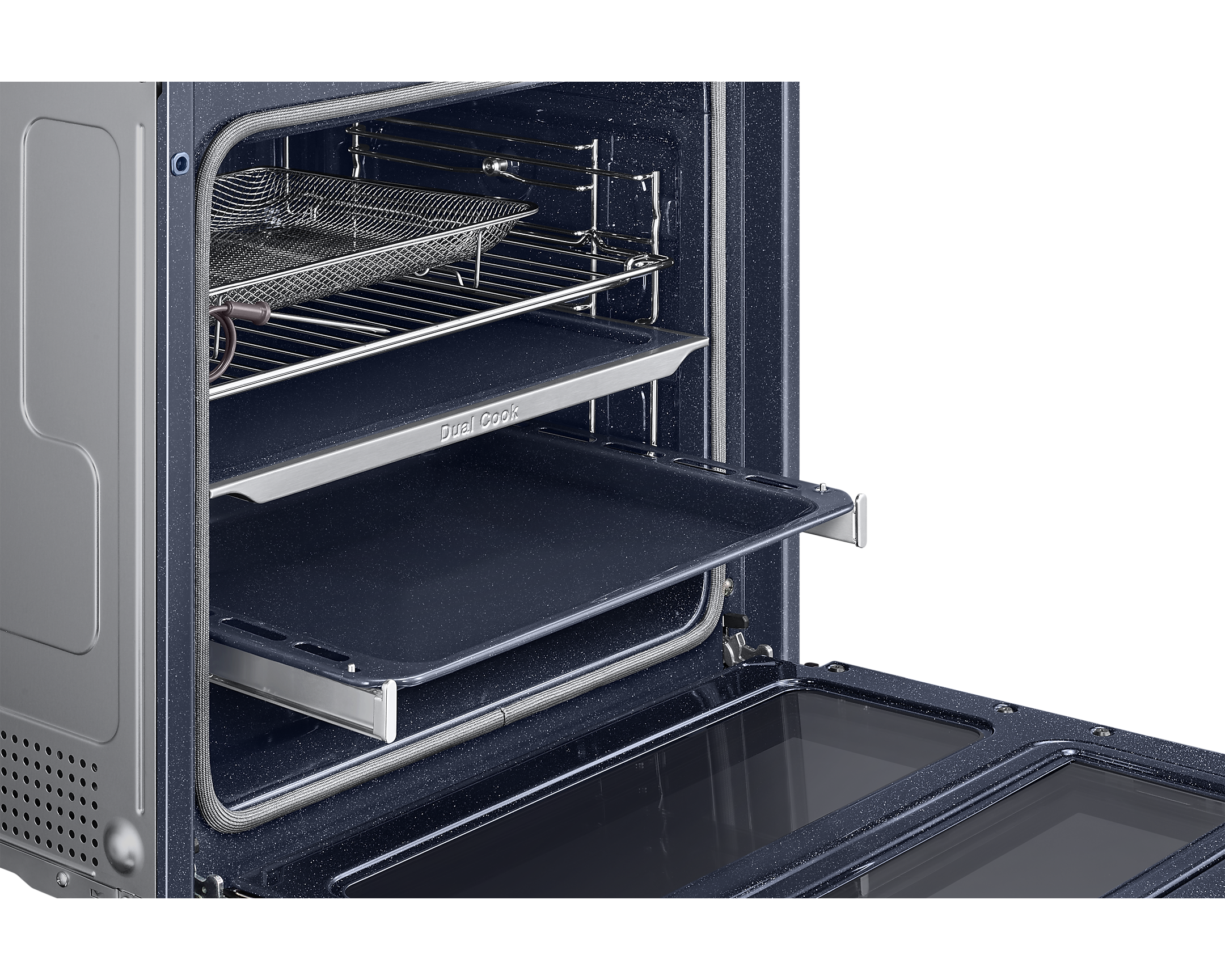 Основною перевагою є технологія Dual Cook Flex, що дозволяє готувати два різних блюда одночасно, використовуючи верхню та нижню зони нагріву. Ви можете відкривати лише верхню частину дверцята, що істотно полегшує контроль за процесом приготування. Це ідеальне рішення для сімейних обідів або вечірок.