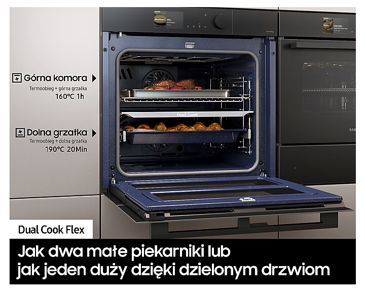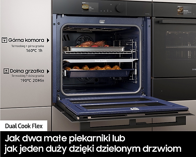 Завдяки дизайну Dual Cook Flex, верхня та нижня зони працюють незалежно, дозволяючи уникати втрат тепла при перевірці страв. Крім того, функція Air Fry забезпечує приготування хрусткої їжі з мінімумом жиру, а Air Sous Vide гарантує рівномірне прогрівання до 1°C.