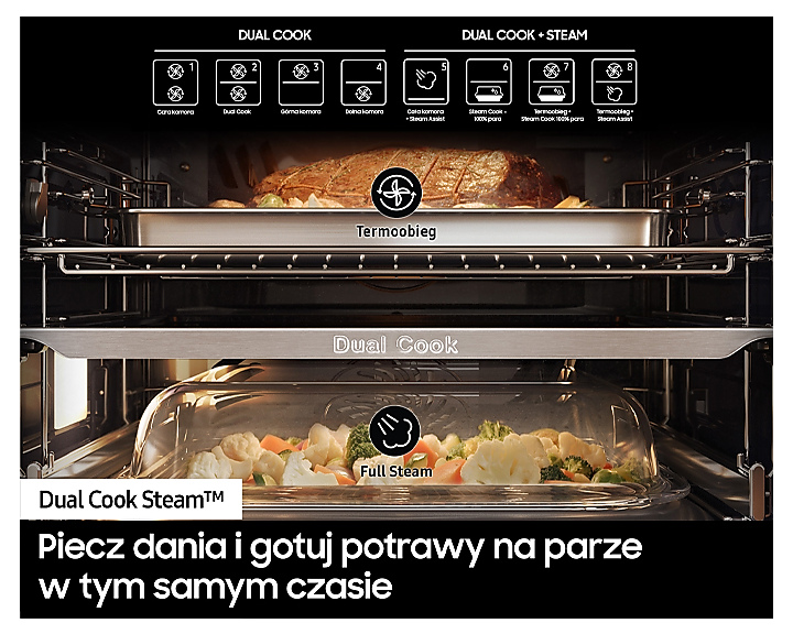Духовий шкаф Samsung NV7B6785KAK/U2 пропонує найсучасніші технології для зручного та ефективного приготування їжі. Завдяки функції Dual Cook Steam™ ви можете одночасно випікати і готувати на парі, зберігаючи соковитість ваших страв, а Steam Assist забезпечує ідеальне хрустіння зовні та м'якість всередині. Шафа містить спеціальне посудину для приготування на пару, що дозволяє зберегти природний смак та поживні властивості продуктів.