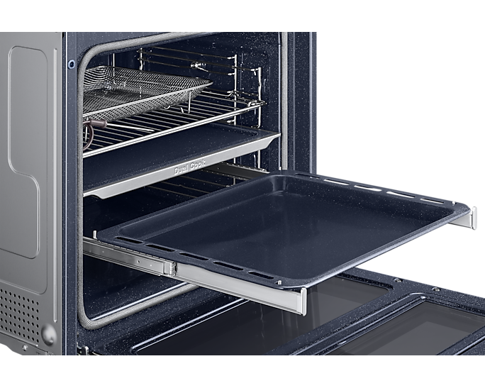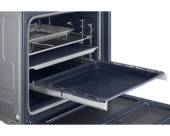 Духовий шкаф Samsung NV7B6795JDK/U1 — це сучасний прилад для приготування їжі, який поєднує в собі ефективність та інноваційні рішення. Має великий об'єм камери в 76 літрів, що дозволяє легко готувати для великої родини або компанії. Серед ключових технологій, які забезпечують відмінні результати приготування, варто виділити Dual Cook Flex, що дозволяє одночасно використовувати верхню та нижню зони приготування з різними налаштуваннями часу.