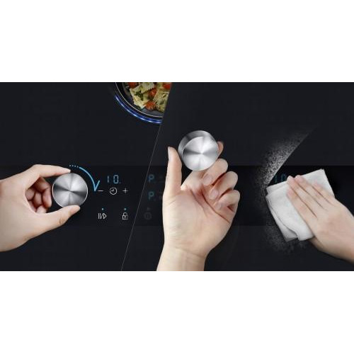 Варильна поверхня представлена в стильному чорному кольорі, що дозволяє поєднувати її з різними інтер'єрами. Висока ефективність та безпека експлуатації, зокрема відсутність нагріву поверхні під час приготування, роблять цей пристрій незамінним помічником на вашій кухні.