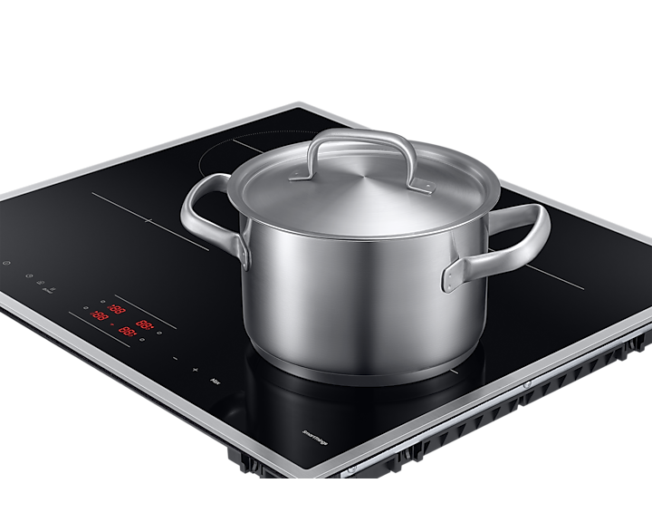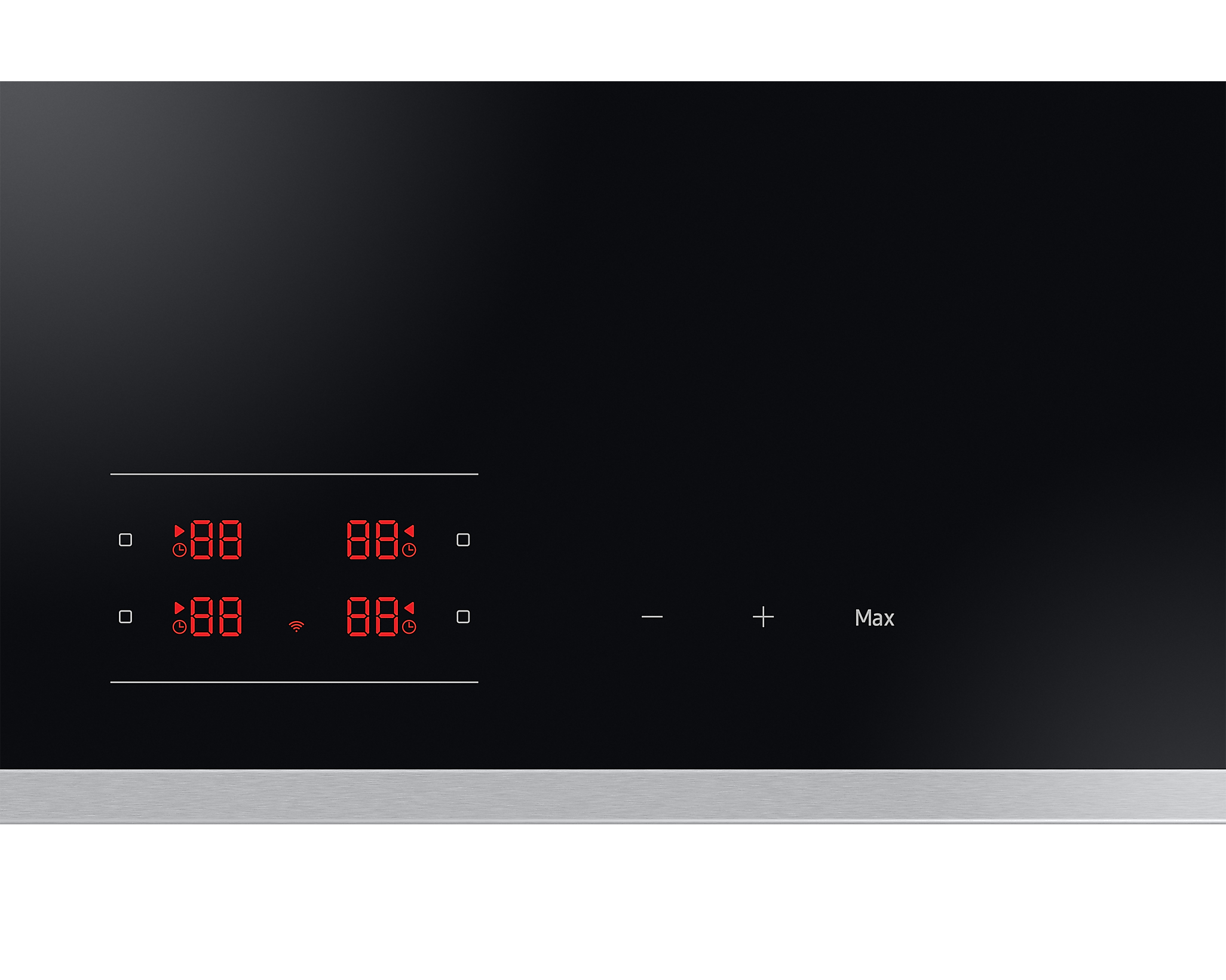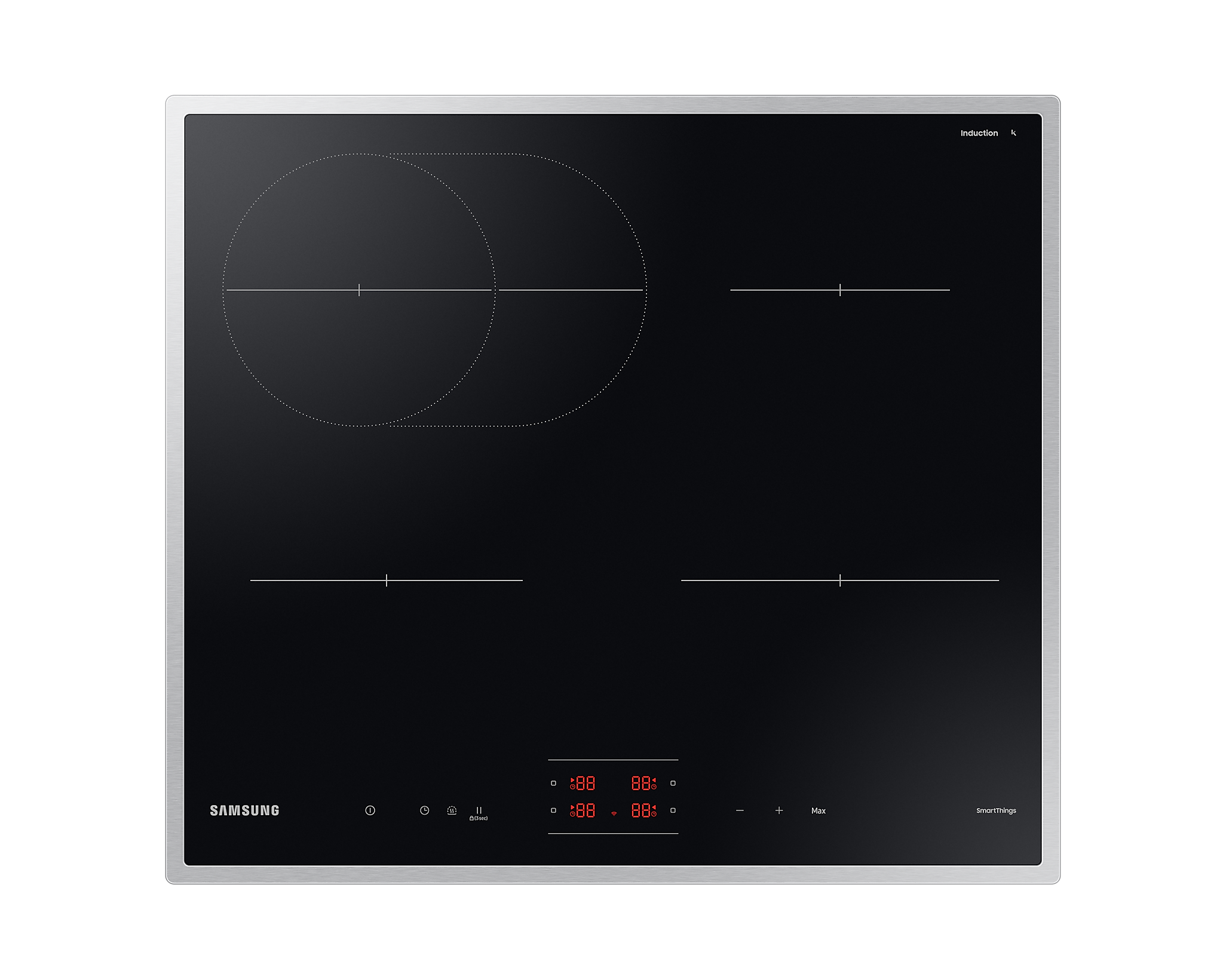 Індукційна варильна поверхня Samsung NZ64B4015HK/U1 має 4 зони нагріву, різні режими потужності, а також функцію Booster (P) для швидкого нагріву. Вона також оснащена функцією Restwärmeanzeige, яка показує, коли поверхня ще гаряча. Рамка виготовлена з нержавіючої сталі, а управління здійснюється за допомогою сенсорних кнопок.