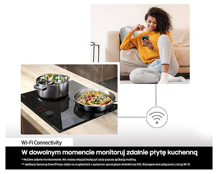 Завдяки функції Auto Connectivity та підтримці Wi-Fi користувач може з легкістю керувати варильною панеллю за допомогою смартфона. Крім того, варильна поверхня оснащена функцією SmartThings Cooking, яка надає персоналізовані рецепти, плани приготування та покупок.