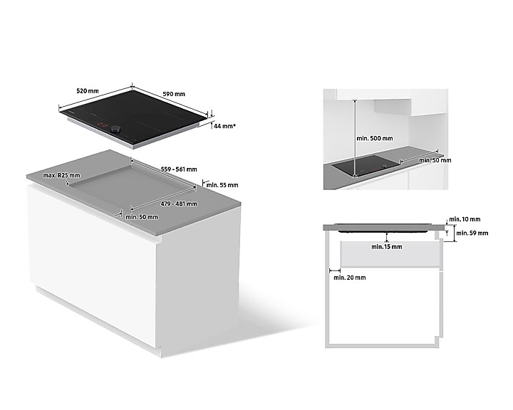 Загальні розміри варильної поверхні становлять 590 x 48 x 520 мм. Вага цієї моделі складає 11 кг, що робить її зручною для встановлення. Відмінна якість в поєднанні з передовими технологіями робить цю варильну поверхню відмінним вибором для будь-якої сучасної кухні.