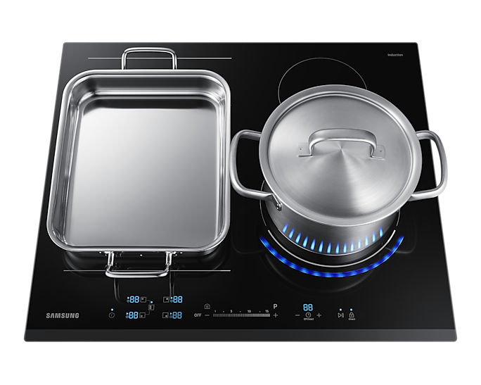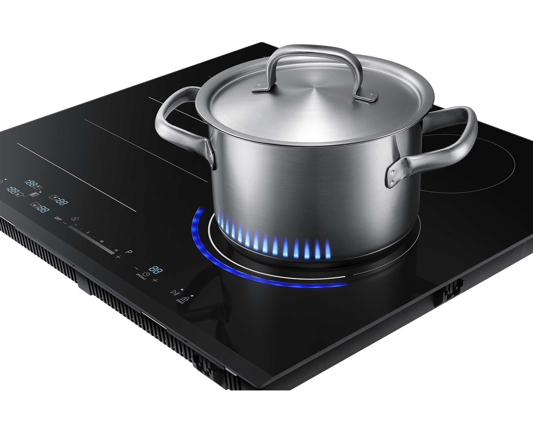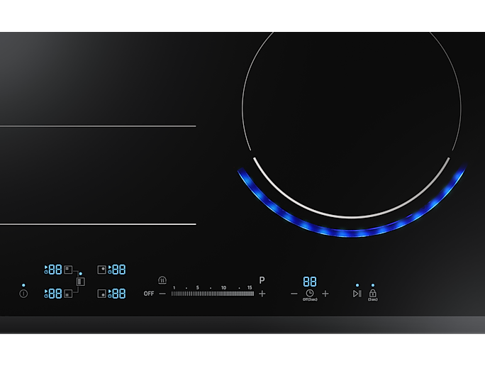 Варильна поверхня Samsung NZ64N9777BK/E2 - це сучасне рішення для вашої кухні з технологією Virtual Flame™, яка за допомогою світлодіодів LED сигналізує, з якою потужністю нагрівається зона. Світло, схоже на полум’я, змінює свою висоту і колір в залежності від налаштувань. Це забезпечує точний контроль над потужністю роботи кожної зони.