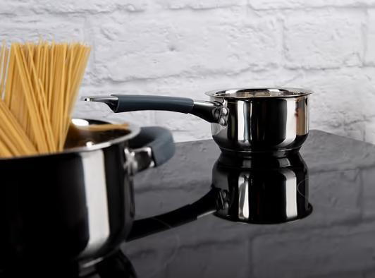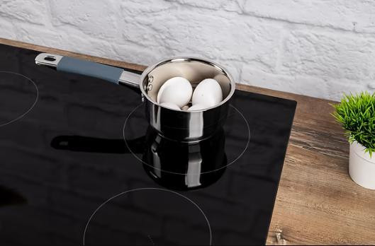 Варильна поверхня обладнана чотирма конфорками: дві з них діаметром 183 мм з потужністю 1,8 кВт, а інші дві мають діаметр 148 мм і потужність 1,2 кВт. Всі конфорки оснащені індукційними елементами та підтримують дев'ять рівнів температури, що регулюються за допомогою сенсорних кнопок. Також присутні індикатори залишкового тепла, які вказують на те, що конфорка ще не охолола.