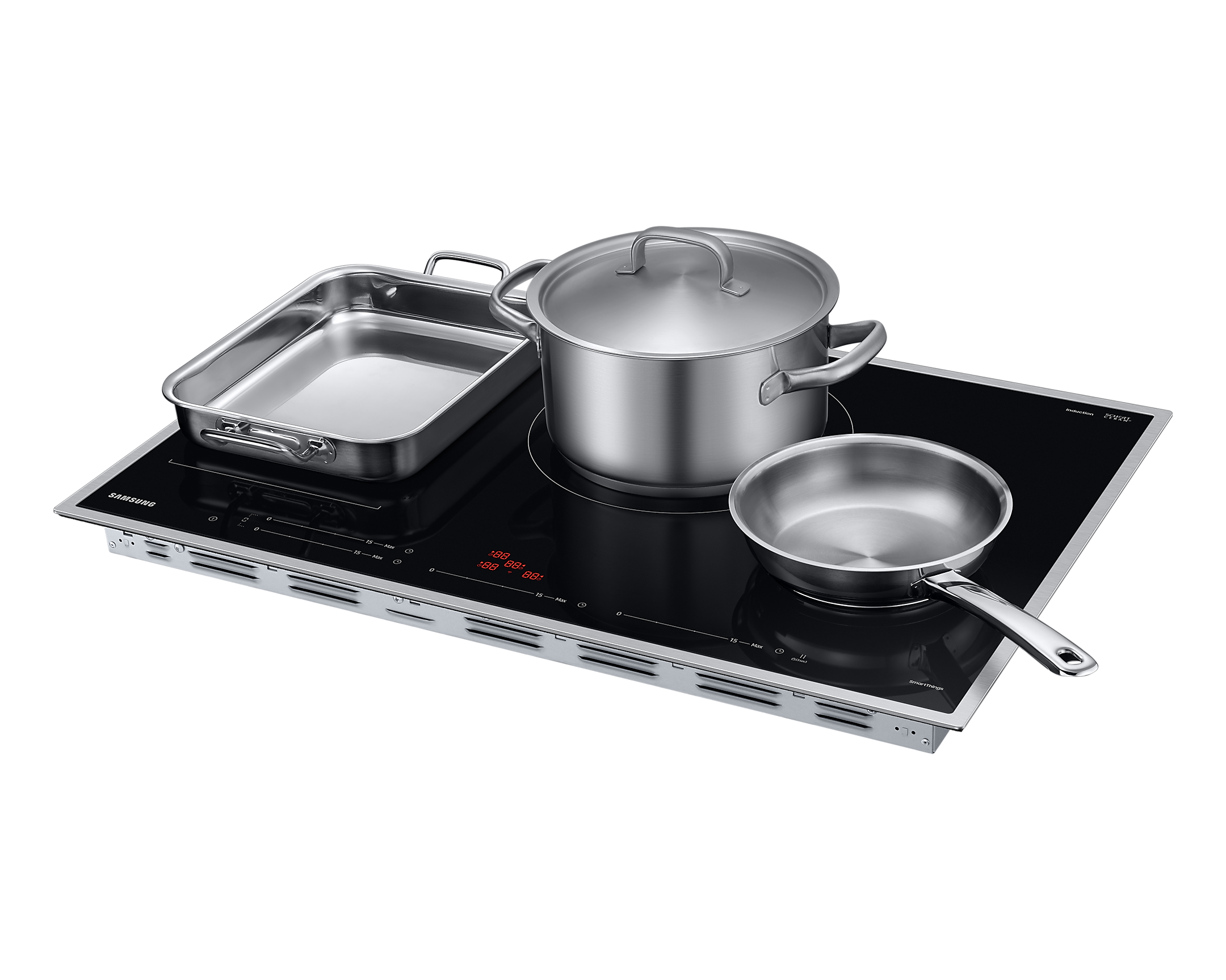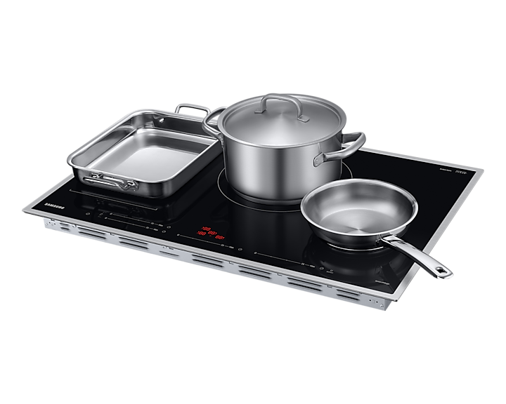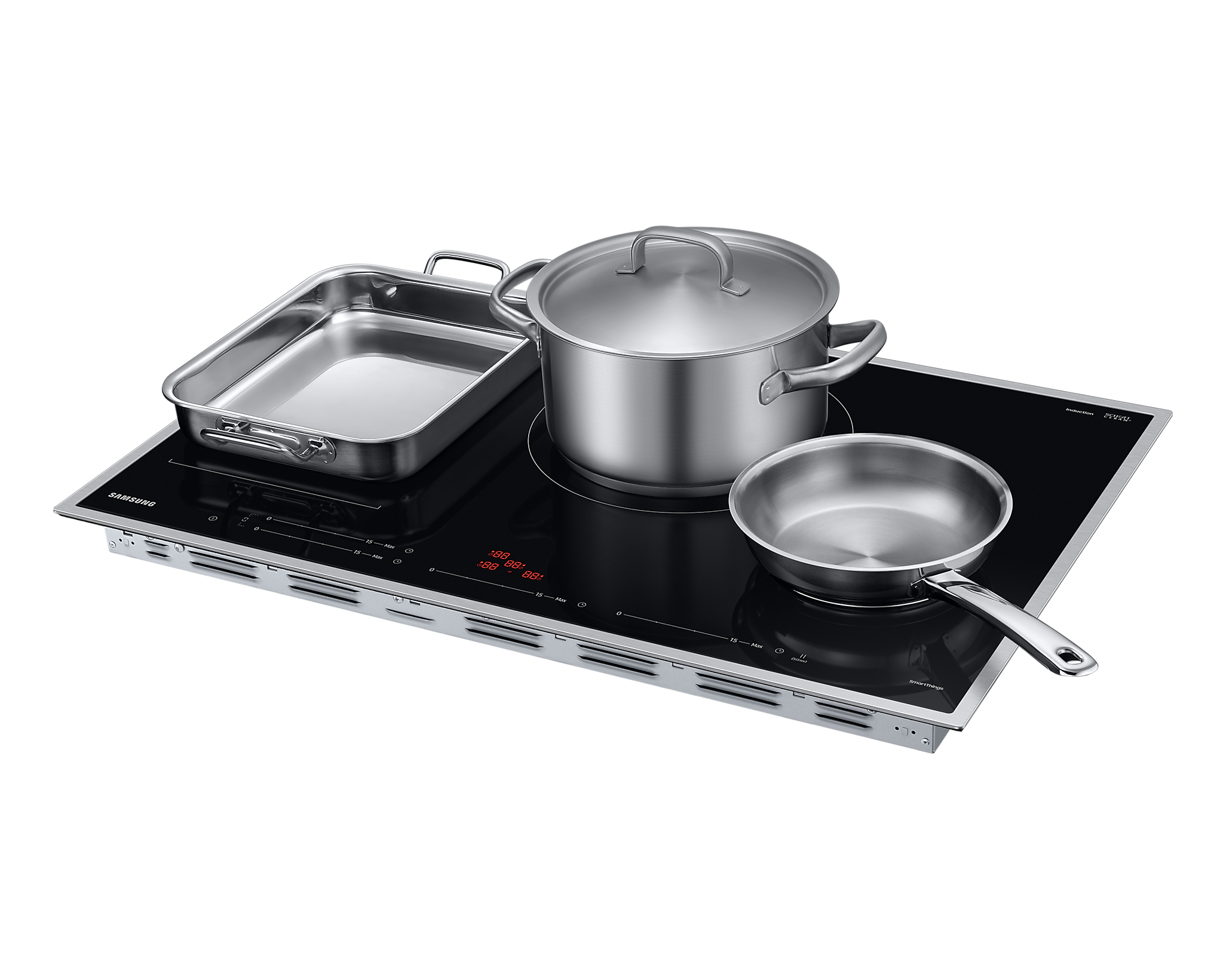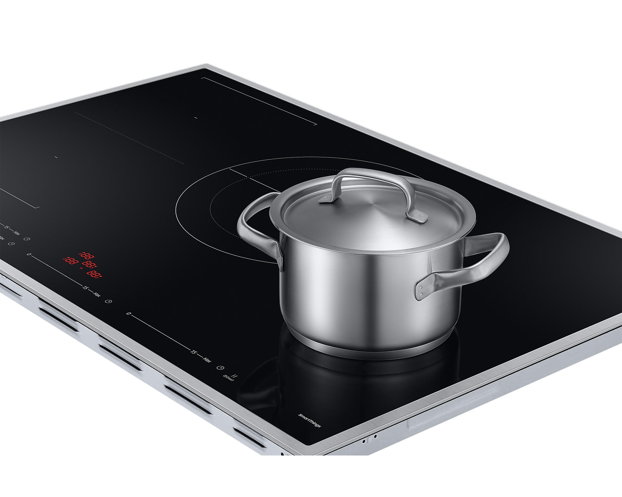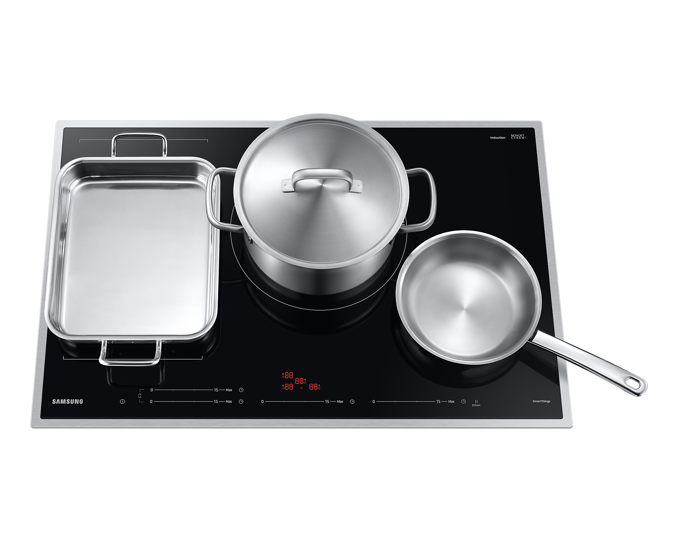 Також варильна поверхня оснащена LED-дисплеєм, сенсорними кнопками зі слайдером управління, автоматичним визначенням розміру та розташування каструлі, функцією автоматичного вимкнення при переливанні та таймером. Вона має можливість підключення до Wi-Fi та працює з додатком SmartThings, який рекомендує персоналізовані рецепти та створює тижневий харчовий план.