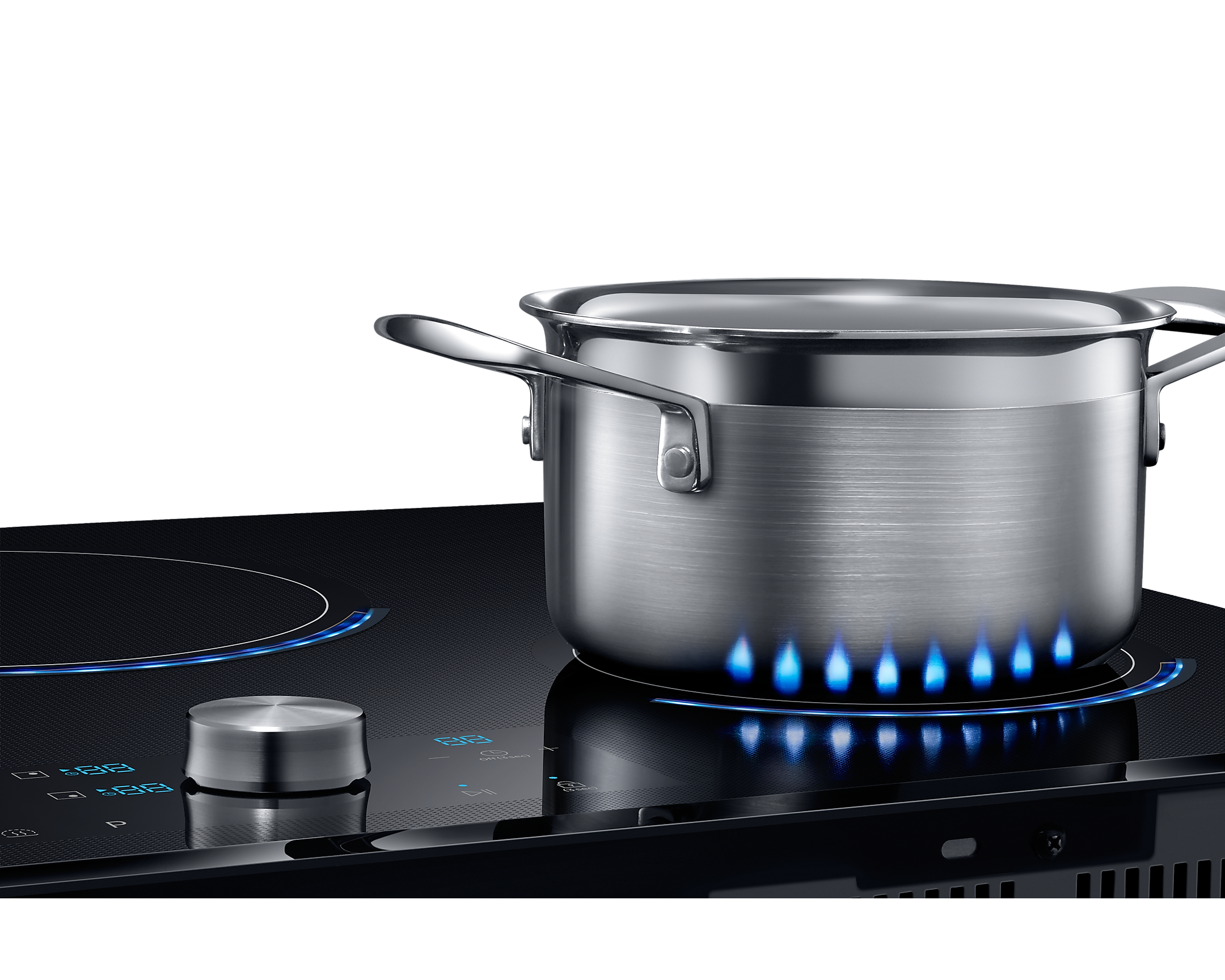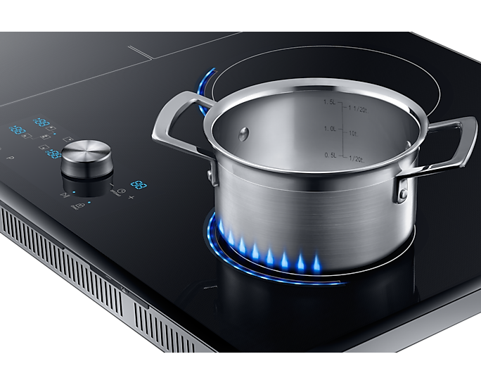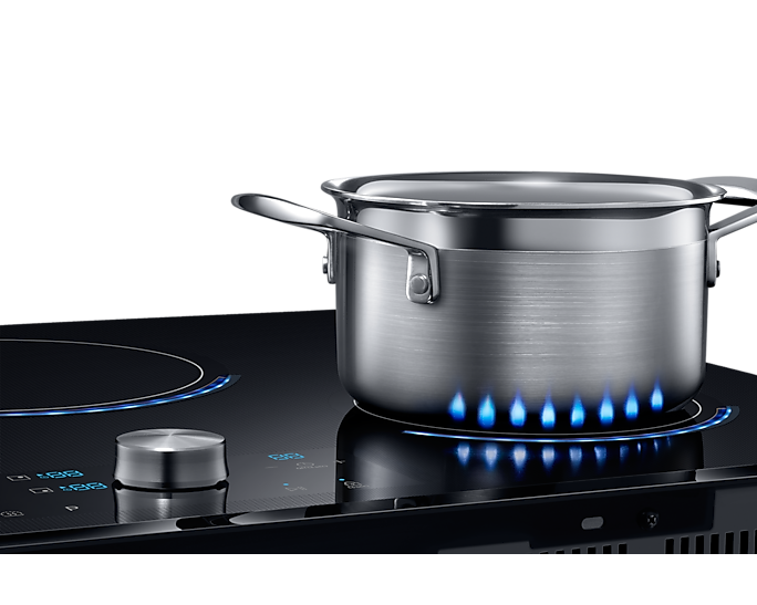 Варильна поверхня Samsung NZ84J9770EK/EO - це інноваційне рішення для вашої кухні. Основною технологією є Strefa Flex Zone, яка дозволяє готувати велику кількість страв одночасно, використовуючи найбільші посудини. Технологія віртуального пламені Virtual Flame™ з допомогою світлодіодів сигналізує потужність, з якою працює кожна зони нагріву, що забезпечує вам точність приготування страв.