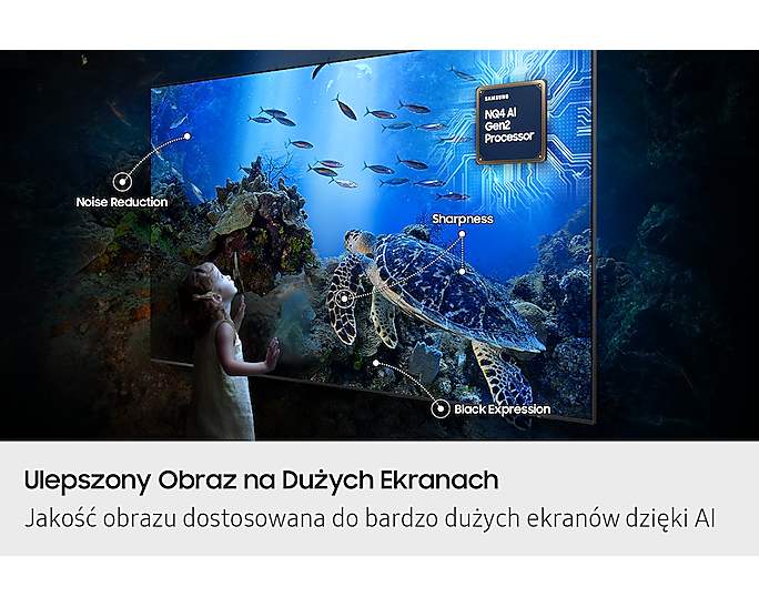 Цей телевізор оснастили потужним AI процесором NQ4 Gen2, котрий підтримує технології High Dynamic Range, включаючи HDR 10. Завдяки Quantum Mini LED підсвічуванню, ви отримаєте неперевершений контраст і чіткість зображення. Функція Smart Calibration автоматично налаштовує параметри для досягнення оптимальної яскравості та якості зображення.