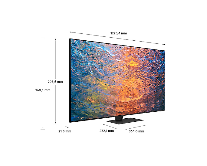 Телевізор має розміри: з підставкою 1225.4 x 768.4 x 232.1 мм та вагою 20.6 кг, що робить його досить легким для монтажу. Samsung QE55QN95C стане чудовим вибором для тих, хто цінує якість зображення та звуку.