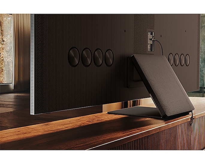 Аудіосистема телевізора вражає з потужністю у 70 Вт та підтримує технології Dolby Digital Plus і OTS (Object Tracking Sound), які створюють об'ємний звук. У доповнення до цього, інтегрована функція Q-Symphony дозволяє з'єднати телевізор з саундбаром для покращеного звучання.