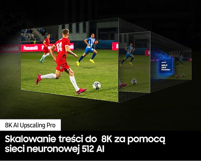 Телевізор оснащений процесором NQ8 AI Gen3, що використовує штучний інтелект для масштабування контенту до 8K. Поряд з технологією Neo Quantum HDR 8K Pro ви зможете оцінити надзвичайну якість зображення з глибокими чорно-білими відтінками і яскравими кольорами. Додаткова можливість ечдивістям AI Motion Enhancer дозволяє досягти гладкості зображення навіть під час швидкого руху.