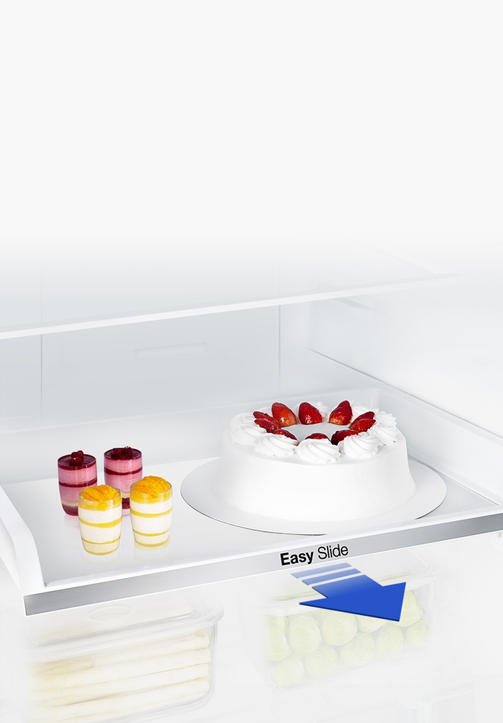 Заморожувач має об'єм 108 літрів з трьома зручними шухлядами та можливістю Power Freeze для швидкої заморозки продуктів. Для зручності використання передбачено алюмінієве підсвічування в обох відділеннях.