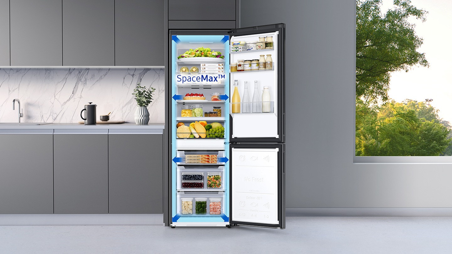 Холодильник Samsung RB33B612FBN/EF - це ідеальне рішення для вашої кухні, поєднуючи стильний дизайн і сучасні технології. Його загальний об’єм становить 344 літри, що дозволяє з комфортом розміщувати усі ваші продукти. Холодильник працює на основі технології All Around Cooling, яка забезпечує рівномірне охолодження всередині, що запобігає утворенню гарячих зон.