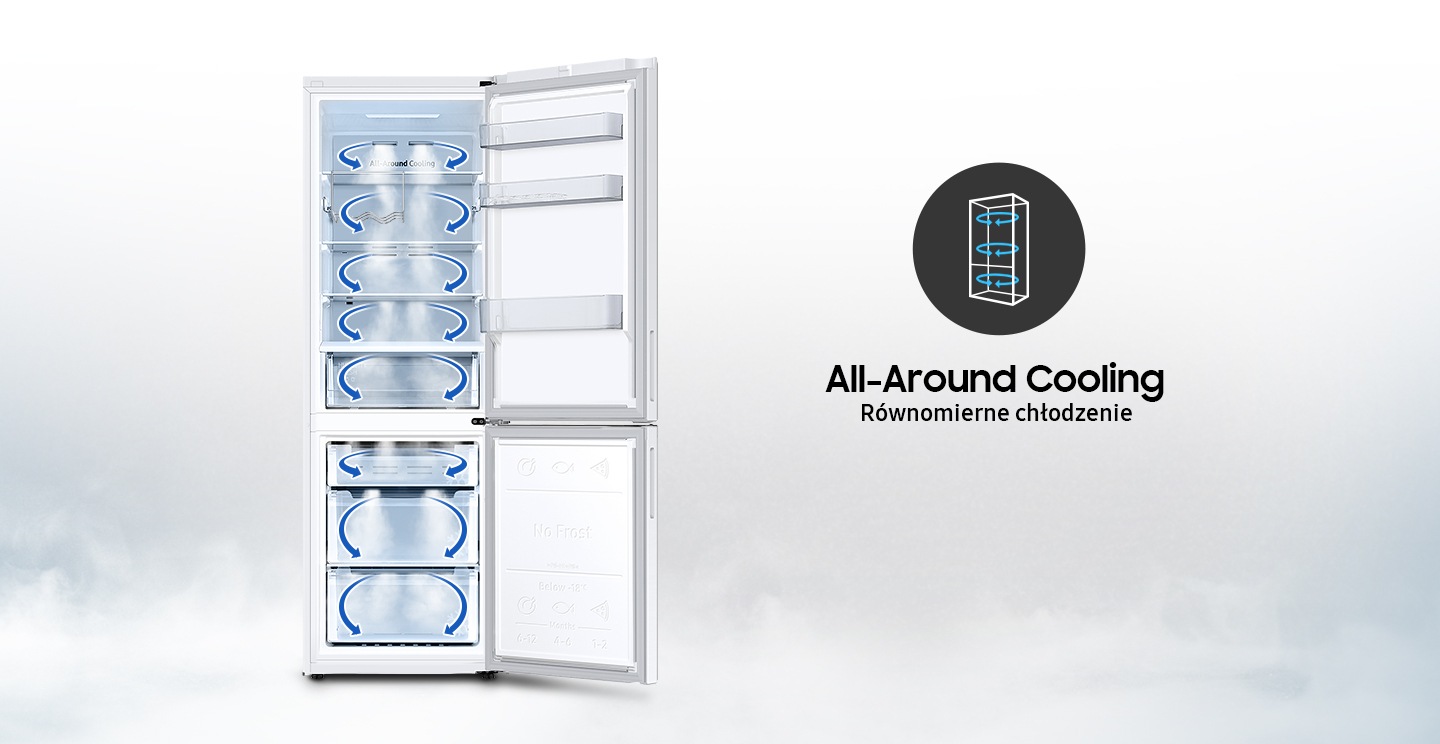 Холодильник Samsung RB33B612FWW/EF - це ідеальне рішення для тих, хто цінує якість та функціональність. Його об'єм становить 344 літри, що забезпечує достатньо простору для зберігання продуктів. З типом охолодження All-Around Cooling, ви можете бути впевнені, що температура в холодильнику розподіляється рівномірно, забезпечуючи свіжість продуктів на всіх полицях.