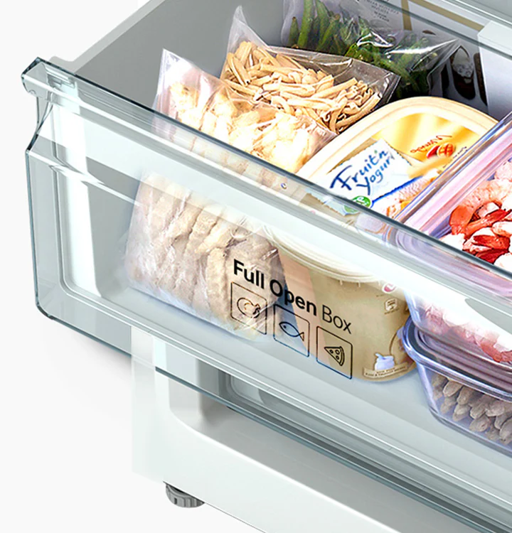 Холодильник має пересувні двері, що дозволяє легко налаштувати його під ваш інтер'єр. Внутрішнє освітлення LED забезпечує яскраве і енергоефективне світло, а стеклянні полички додають естетичний вигляд і простоту в догляді. А також є три шухляди для заморожування, що створюють зручність для зберігання харчів.