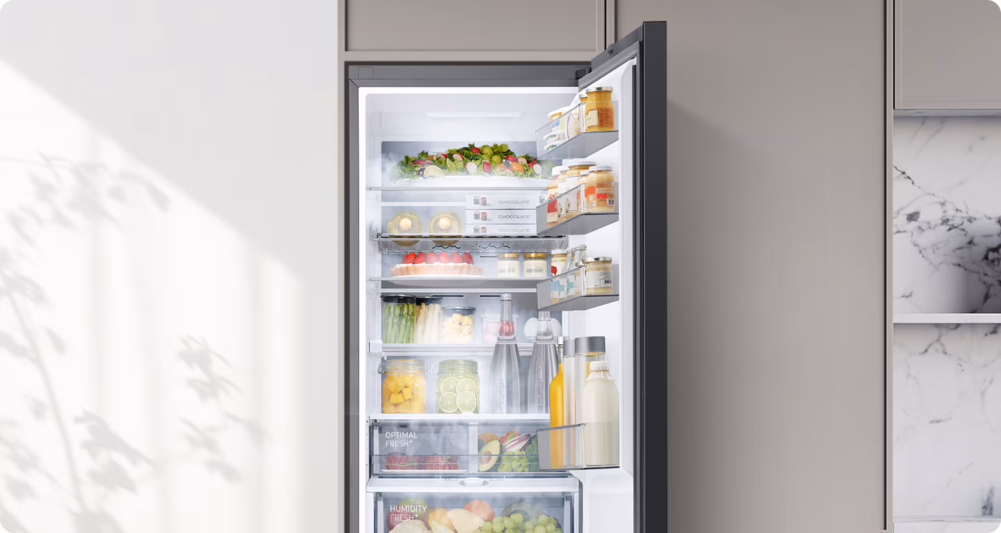 Цей холодильник оснащений інноваційною технологією All-Around Cooling, яка забезпечує рівномірне охолодження, що не дозволяє продуктам швидко псуватися. Завдяки функції No Frost вам не потрібно буде турбуватися про належний догляд за морозильною камерою, оскільки вона не покривається інеєм.