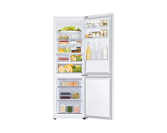 Холодильник Samsung RB34C675DWW/EF забезпечує великий об'єм для зберігання продуктів завдяки своїй загальній об'ємності 344 літри, з яких 230 літрів відведено для холодильного відділу і 114 літрів - для морозильної камери. Це ідеальне рішення для родин, які прагнуть зберігати свіжість продуктів на тривалий час.