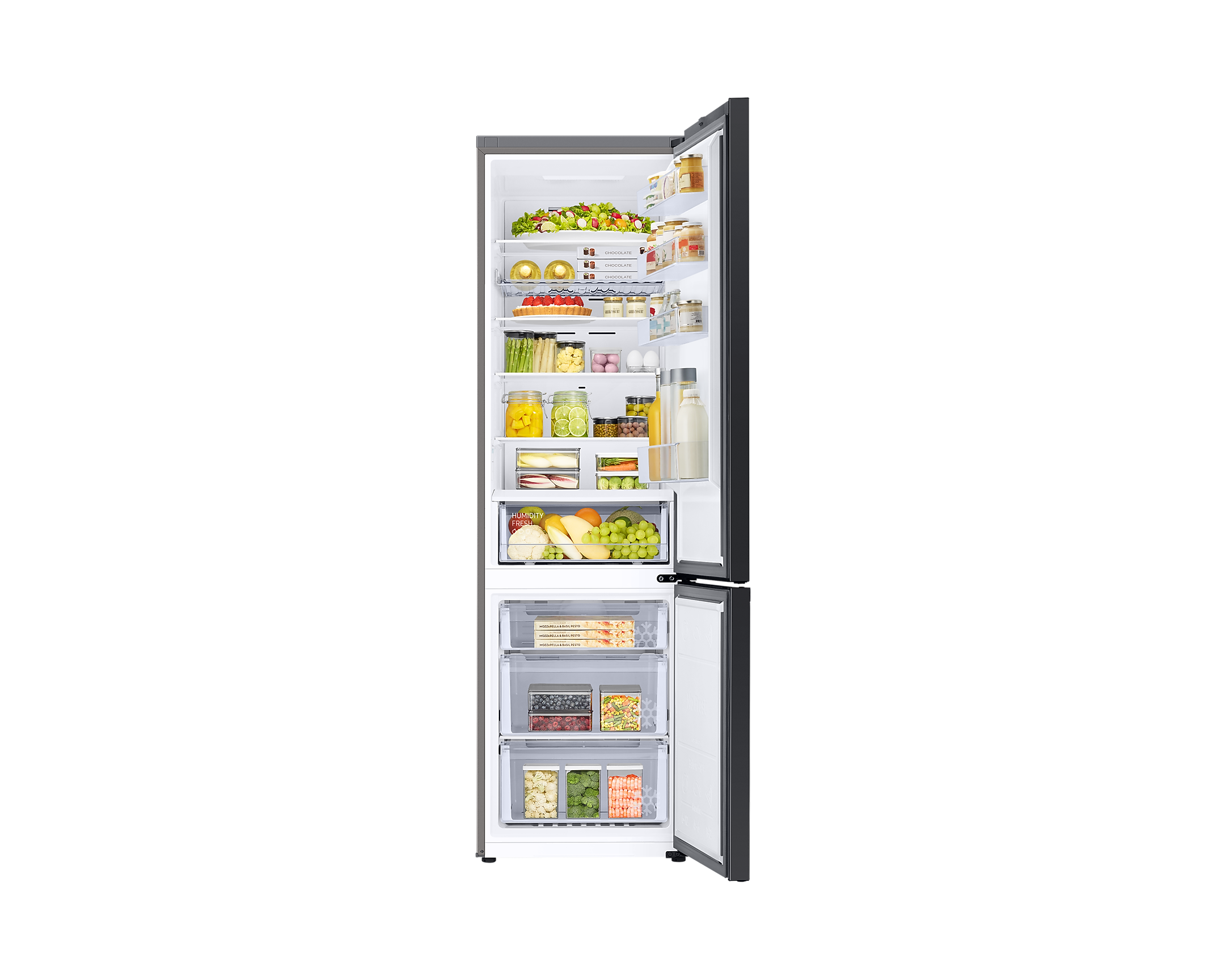 Завдяки його стильному дизайну в глибокому чорному кольорі, холодильник стане елегантним доповненням для будь-якого інтер’єру. За допомогою можливості обирати та замінювати панелі ви зможете адаптувати його під ваш особистий стиль. BESPOKE - це ідеальне рішення для тих, хто хоче, щоб їхня кухня була не лише функціональною, а й стильною.
