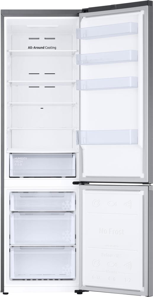 Він оснащений інноваційною технологією No Frost, що запобігає утворенню льоду, забезпечуючи оптимальну циркуляцію повітря та легкість у догляді за пристроєм. Система всебічного охолодження All-Around Cooling рівномірно розподіляє холодне повітря у всіх відділах холодильника, що гарантує свіжість продуктів.