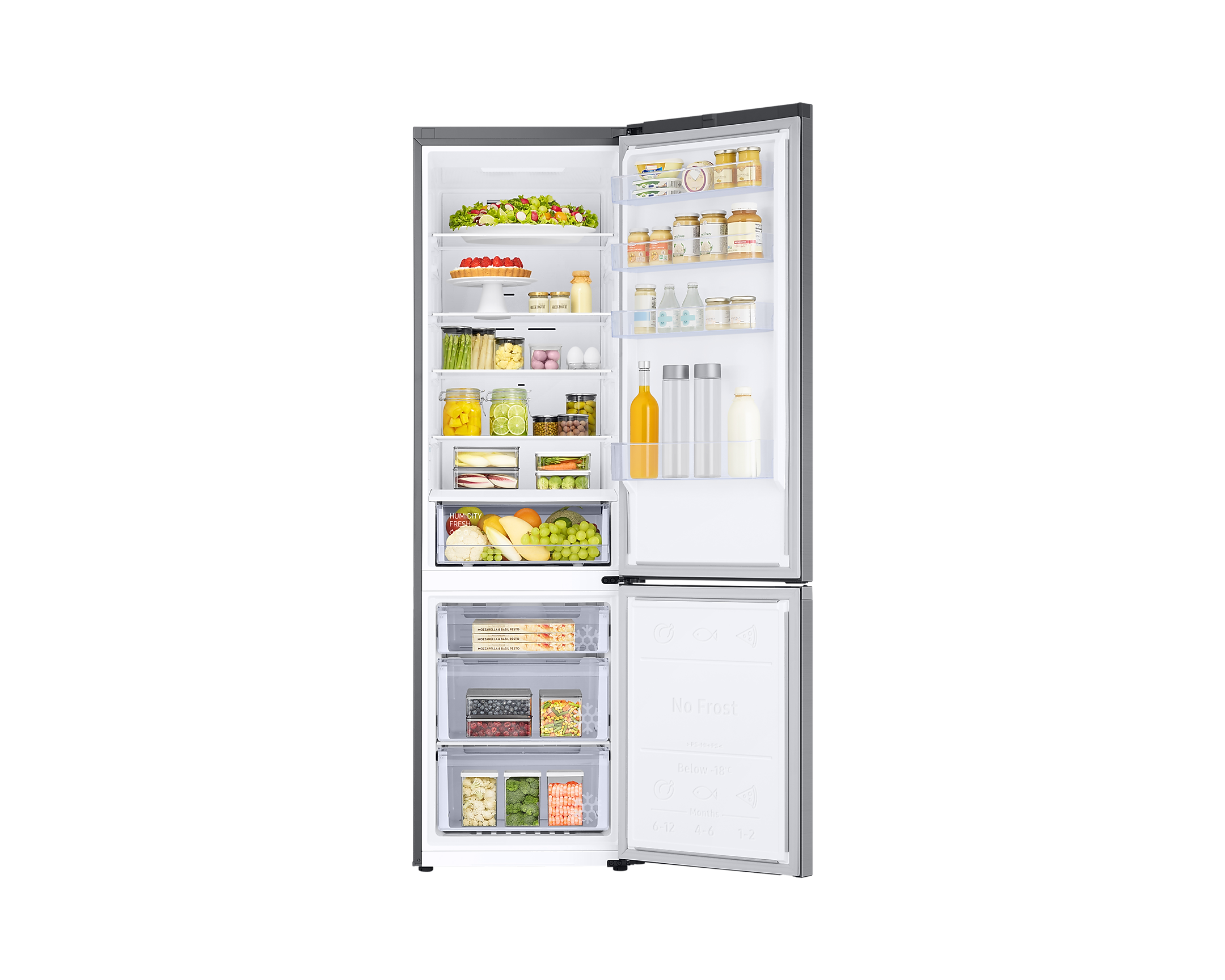 Крім того, холодильник має Humidity Fresh + контроль вологості, що зберігає свіжість фруктів і овочів, оптимізуючи їх умови зберігання. Завдяки зрозумілому управлінню за допомогою додатку SmartThings, ви маєте змогу стежити за енергоспоживанням, а також отримувати рекомендації та персоналізовані рецепти.