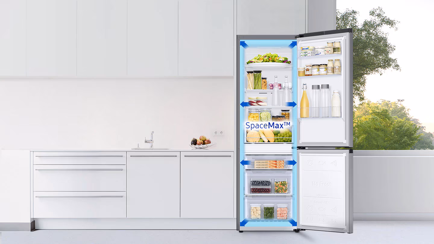 Завдяки технології All-Around Cooling, температура в холодильнику підтримується рівномірно, що дозволяє зберігати свіжість продуктів значно довше. Ви також зможете насолоджуватися функцією No Frost, яка запобігає утворенню льоду, економлячи час на розморожування.