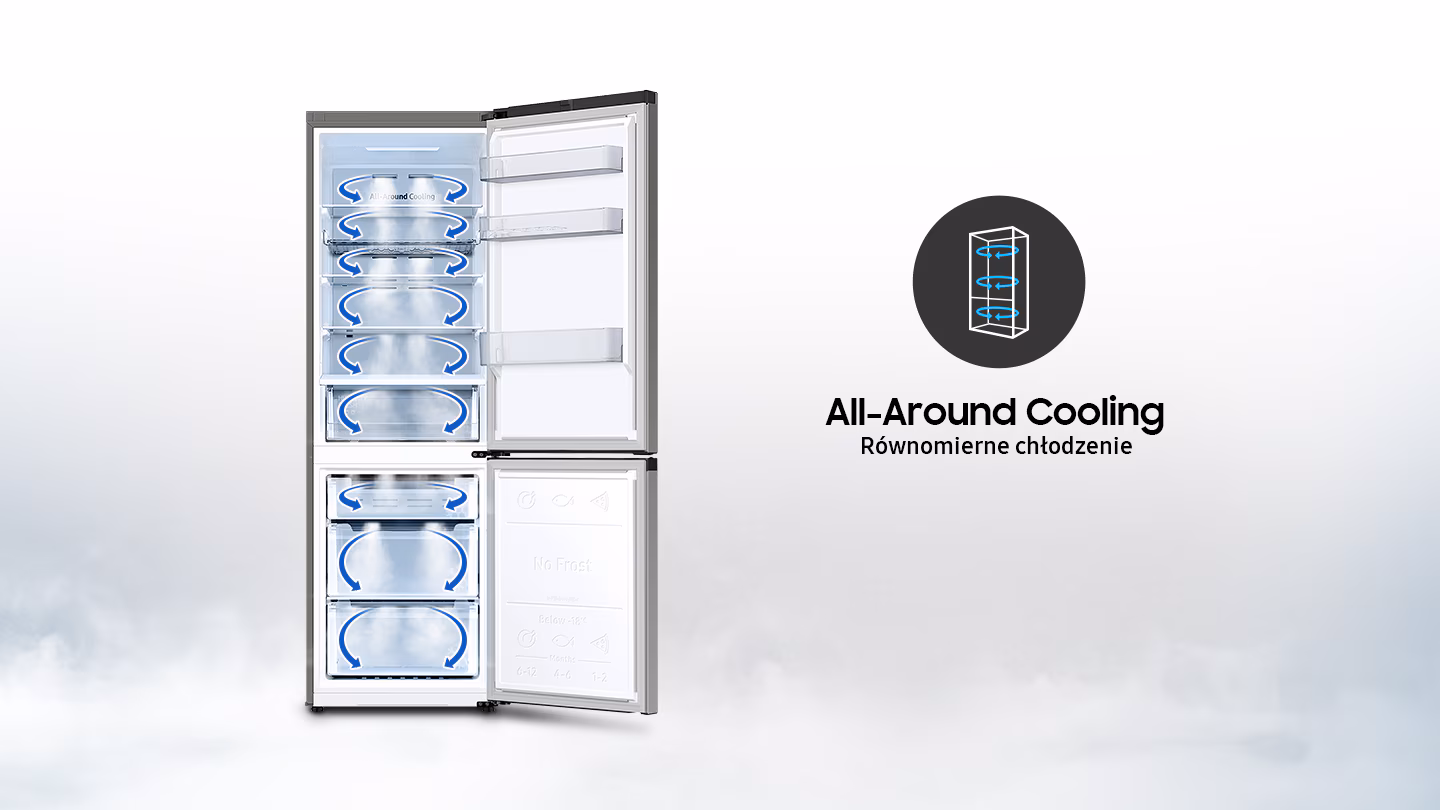 Однією з основних переваг є технологія All-Around Cooling, яка забезпечує рівномірний розподіл температури по всьому об'єму. Холодильник також оснащений функцією No Frost, що виключає утворення льоду та полегшує процес обслуговування. Завдяки функції Power Cool і Power Freeze ви зможете швидко охолоджувати або заморожувати продукти без втрати якості.