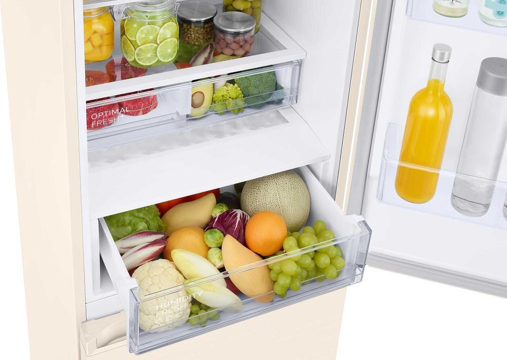 Спеціальні технології, такі як MultiAirflow, забезпечують рівномірний розподіл холодного повітря в холодильній камері, а система VitaFresh допомагає зберегти свіжість овочів та фруктів. Також холодильник обладнаний LED освітленням і висувними полицями EasyAccess для зручного завантаження продуктів.