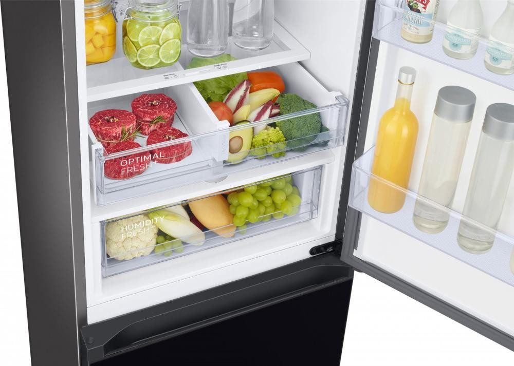 Холодильник Samsung RB38C6B6D22 — сучасне рішення для вашого дому з оптимальним поєднанням стилю та функціональності. Ця модель має об’єм холодильника 273 л та морозильної камери 112 л, що дозволяє зручно зберігати все необхідне. Ви зможете насолоджуватися справжньою свіжістю продуктів завдяки технології No Frost, яка запобігає снігутворенню та забезпечує рівномірний розподіл холоду.