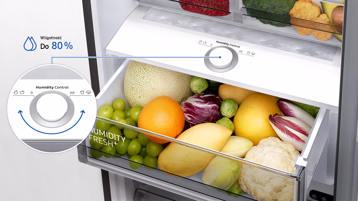 Ще однією перевагою є кількість полиць – їх чотири, а також два зручних ящика для овочів. Можливість відкривати двері в будь-який бік та внутрішнє LED підсвічування додають зручності та естетичного вигляду. Система управління вологості і шухляда Optimal Fresh + дозволяють зберігати свіжість продуктів ще довше.