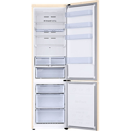 Об’єм холодильного відділення становить 273 літри, воно обладнане многопотоковою системою All Around Cooling, яка забезпечує рівномірне охолодження по всіх полицях. Функція суперохолодження дозволяє швидко охолодити продукти, зберігаючи їх свіжість. Крім того, наявність Humidity Fresh у відділенні для овочів і фруктів підтримує оптимальний рівень вологості.