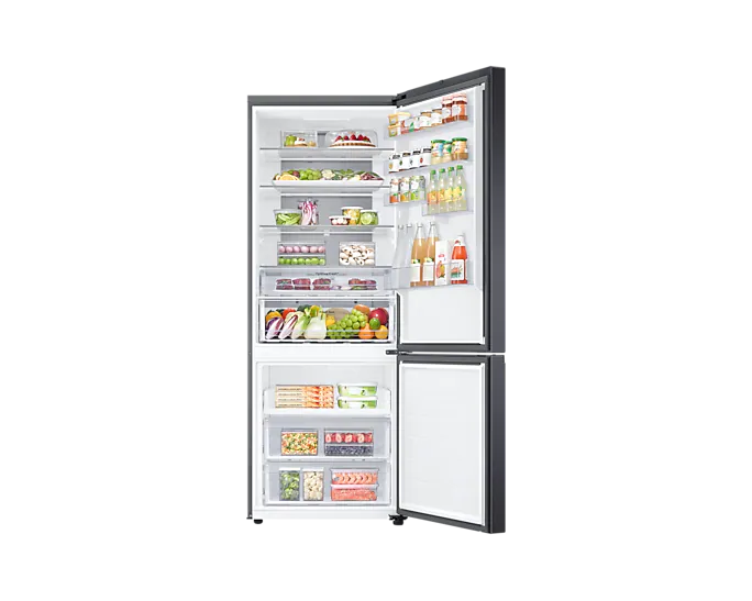 Холодильник має стильний графітовий дизайн, що підходить до будь-якого інтер'єру. Він оснащений зручним внутрішнім LED-освітленням та вбудованим WiFi, що дозволяє контролювати параметри з мобільного додатку SmartThings. Також холодильник оснащено сигналізацією відкритих дверей для запобігання енергетичних витрат.
