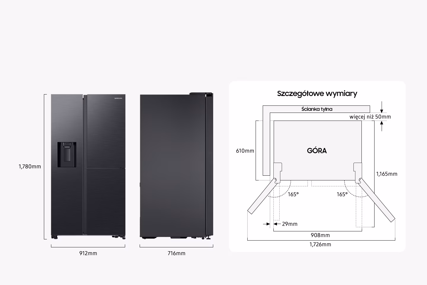 Холодильник Samsung RH64DG53R3B1EO стане незамінним помічником у вашій кухні. Завдяки своїм великим розмірам, він має чисту ширину 912 мм, висоту 1780 мм і глибину 716 мм, що забезпечує велику ємність для зберігання продуктів. Об'єм холодильника становить 410 л, а морозильна камера має об'єм 218 л, що в сукупності дає 628 л усієї корисної площі. Цей холодильник важить 123 кг, що гарантує його надійність та стабільність під час експлуатації.