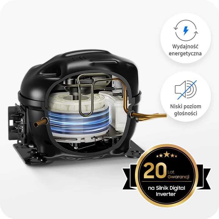 Прилад також обладнаний цифровим компресором Digital Inverter, що робить його енергоефективним (клас E) з рівнем шуму всього 37 дБ. Холодильник підтримує роботу в різних кліматичних умовах (від SN до T), а також має можливість підключення до Інтернету через вбудоване WiFi.