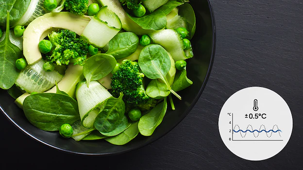 Холодильник також має інверторний компресор, що забезпечує тиху роботу з рівнем шуму лише 36 дБ, а також значну енергоефективність. Крім того, він має зручні рішення для зберігання, такі як LED освітлення, зручні полиці з загартованого скла та ящики для зберігання продуктів.