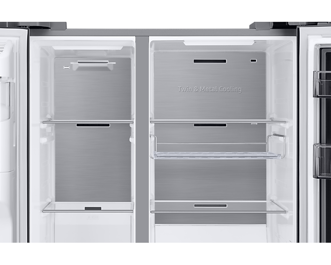 Основною особливістю цього холодильника є технологія Twin Cooling Plus, яка забезпечує оптимальний баланс вологості в холодильній та морозильній камерах. Це дозволяє зберігати продукти свіжими тривалий час. Функції No Frost, Power Cool і Power Freeze забезпечують швидке охолодження та заморожування, що робить приготування і зберігання їжі легшим.