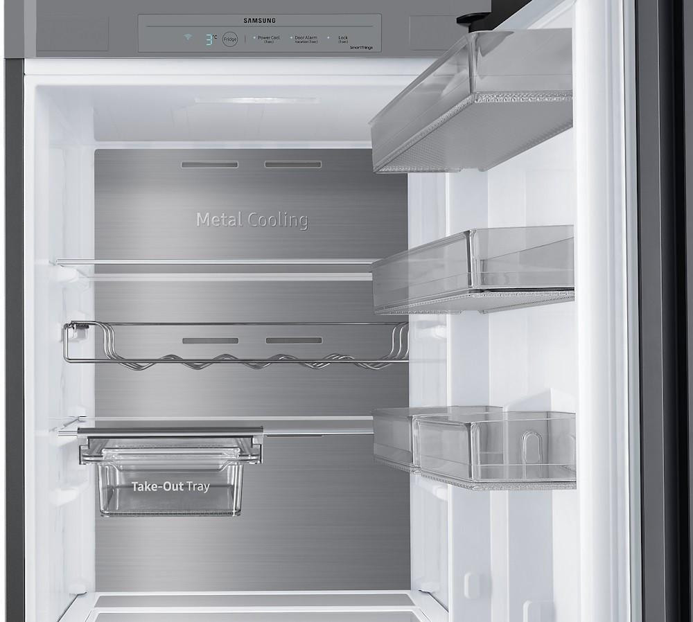 Наявність мультифункціональної системи охолодження multiAirflow гарантує рівномірний розподіл температури всередині холодильника. Компанія Samsung також впровадила в модель технологію VitaFresh, що дозволяє підтримувати оптимальний рівень вологості для зберігання овочів і фруктів. Керування холодильником здійснюється зручно завдяки електронному управлінню.