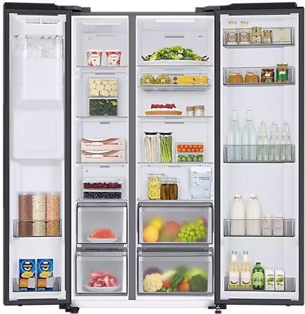 З LED освітленням та внутрішнім дисплеєм, холодильник Samsung RS68CG853EB1 стане не лише функціональним, а й стильним доповненням вашої кухні.