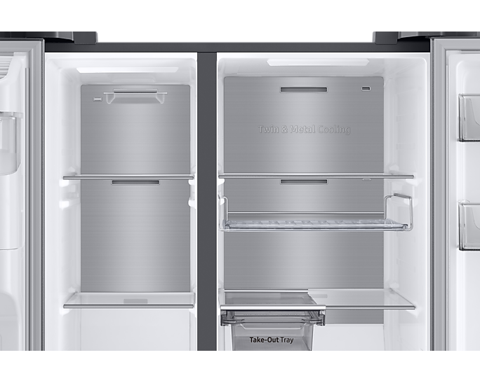 Однією з основних переваг є застосування технології Twin Cooling Plus™, яка забезпечує оптимальне охолодження продуктів у холодильній та морозильній камерах окремо, що запобігає змішуванню запахів. Холодильник оснащений функцією Power Cool для швидкого охолодження продуктів, а також Power Freeze для швидкого заморожування. Серед інших функцій – металеве охолодження, яке підтримує стабільну температуру всередині камери.