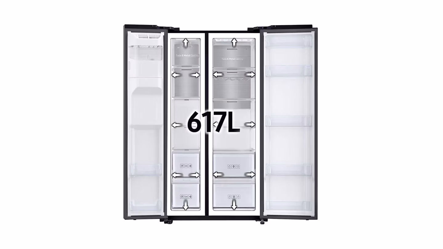 Холодильник Samsung RS68N8321S9/EF - це ідеальний вибір для тих, хто цінує якість та інновації в кухонній техніці. З його об’ємом 639 літрів ви з легкістю зможете зберігати всі необхідні продукти для вашої сім'ї. Завдяки технології Twin Cooling Plus холодильник забезпечує оптимальну вологість та температуру, що дозволяє зберігати свіжість продуктів протягом тривалого часу.